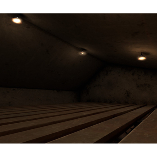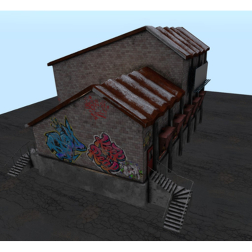 This mesh building is a victim of urban decay and it's completely decrepit. It's from the ghetto, the insides are dirty, rusted, and falling apart. There is graffiti all over it.