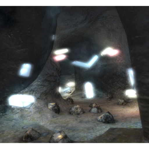 This cave features nice crystals that glow. Each mesh cave piece uses materials, so make sure you have them enabled for the best view.