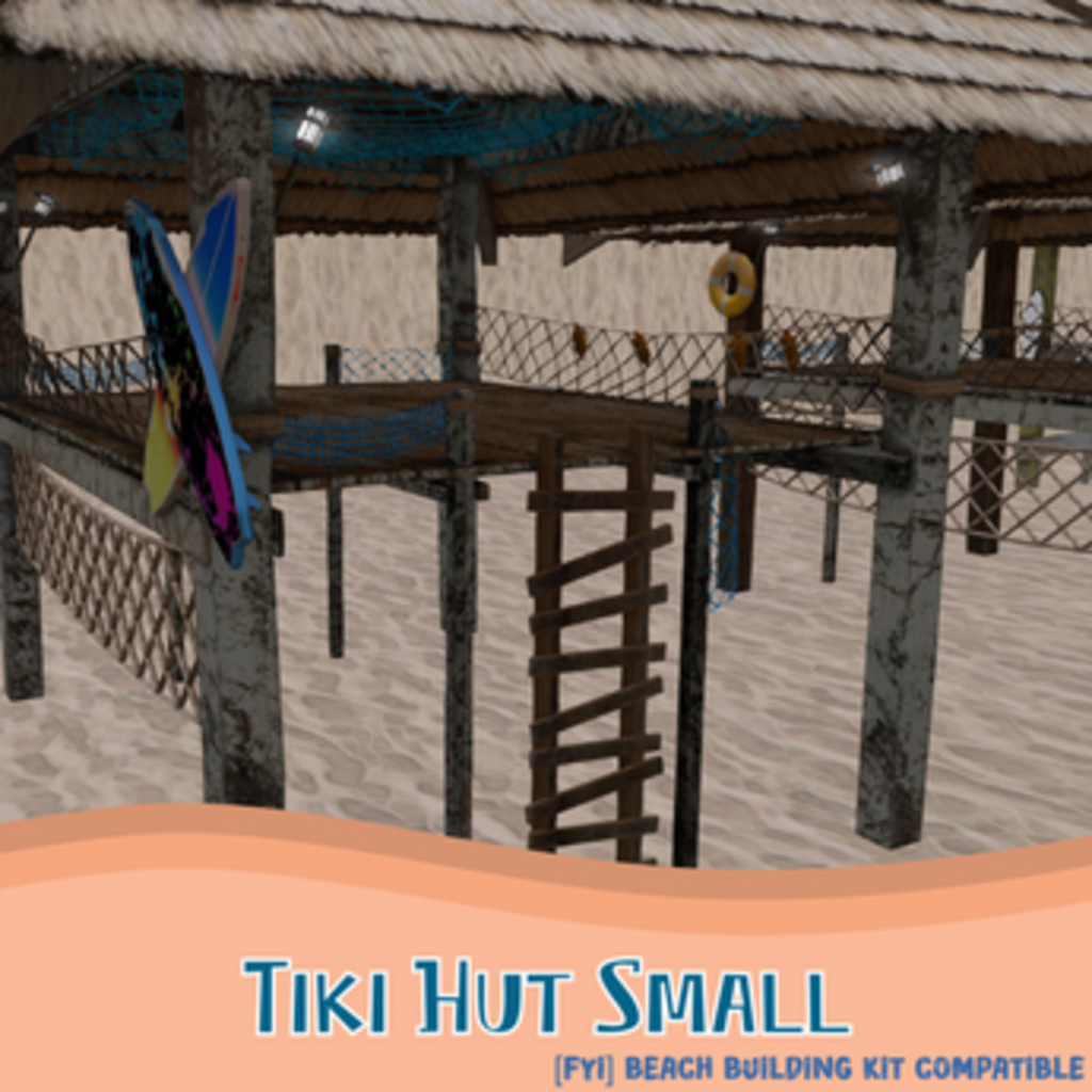 There are three color variants in this pack. A bare tiki hut with minimal paint, a mesh tiki hut with white paint, and a mesh tiki hut with a bright color scheme.